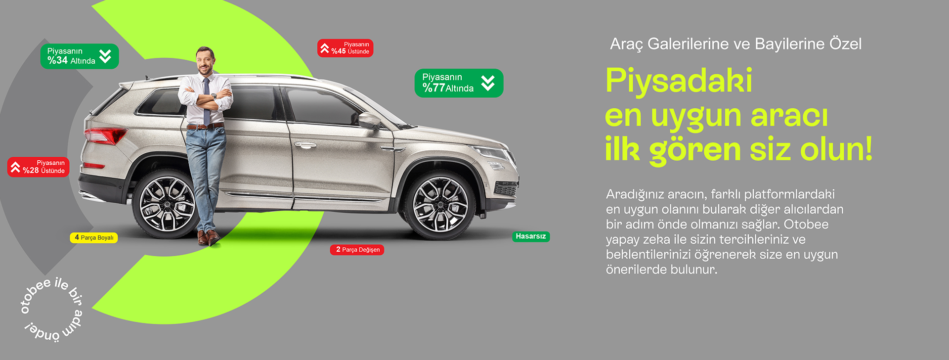 Aradığınız aracın, farklı platformlardaki en uygun olanını bularak diğer alıcılardan bir adım önde olmanızı sağlar. Otobee yapay zeka ile sizin tercihleriniz ve beklentilerinizi öğrenerek size en uygun önerilerde bulunur.